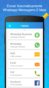 O SKEDit é um aplicativo de agendamento gratuito e fácil de usar que permite programar whatsapp mensagens, programar SMS, enviar e-mails automáticos, agendar postagens no Facebook, e definir lembretes de chamada- tudo isso sem que você tenha que levantar um dedo!